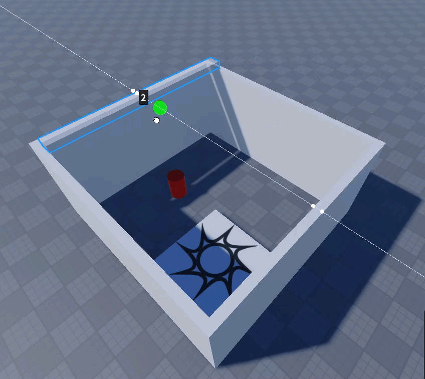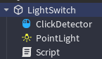 Add a small rectangular part and name it ‘LightSwitch’ inside the room